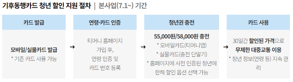 실물 카드의 경우 7월부터 기후동행카드 청년 할인권이 별도로 출시되어 판매됩니다.