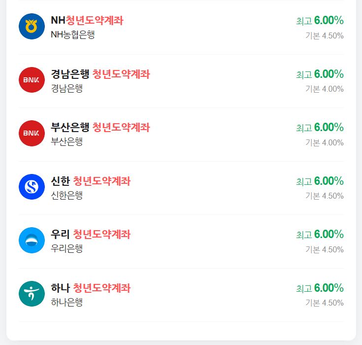 - 만 19세~ 만 34세의 청년들이 월 최대 700,000원의 한도내에서 5년 동안 만기 납입할 경우 월 최대 6%의 정부 기여금 지급해 주고 납입시 발생하는 이자소득에 대해서도 비과세 혜택을 주는 상품입니다.